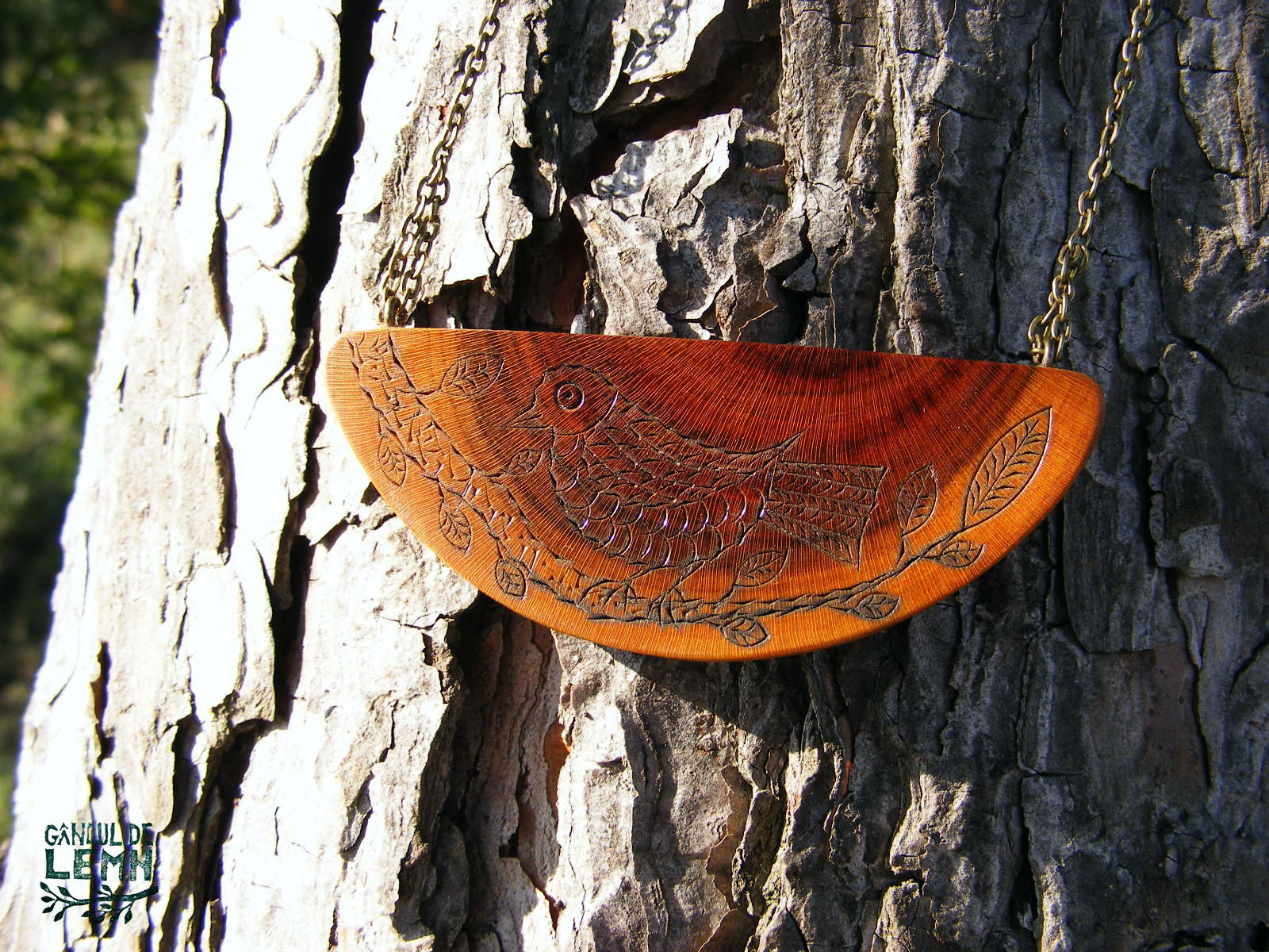 Pasăre pe lemn de prun.(pandantiv)